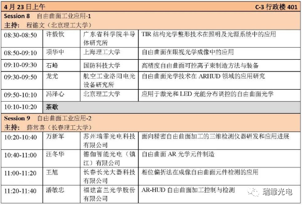 瑞霏光电将在第三届国际自由曲面光学技术及应用研讨会做主题报告